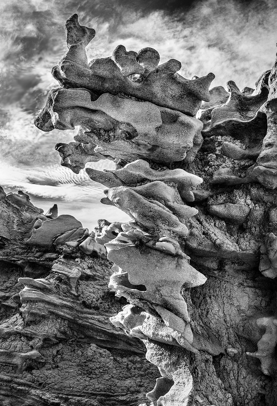 9.6×9.6″; 60pp, 56 images (49 b&w; 7 color). Simpson’s best images from 2022-2023 in the US West and Iceland (mostly), following DalĂ­’s idea of the “concrete irrational”—featuring provocative-evocative figuration in natural formations. These go beyond the contents of conventional pareidolia (faces, bodies, animals) to draw from the expanded inventory of the Surrealist imagination. Most of the images are featured in the galleries on this site. Price includes tax.